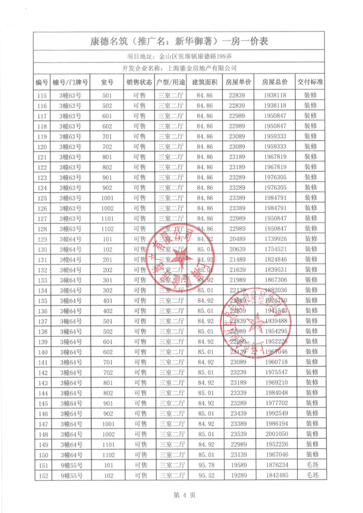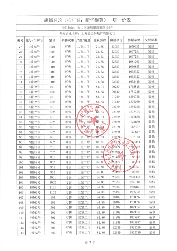 一房一价表如下: