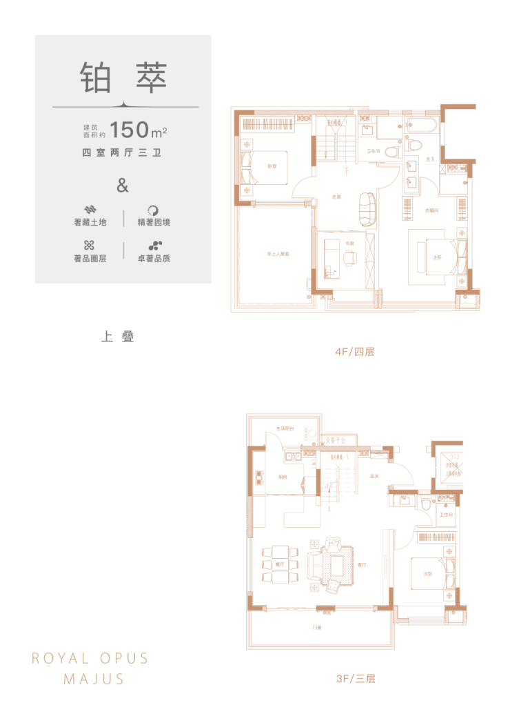 上叠:118(3室2厅3卫),150(4室2厅3卫),200(4室2厅4卫)