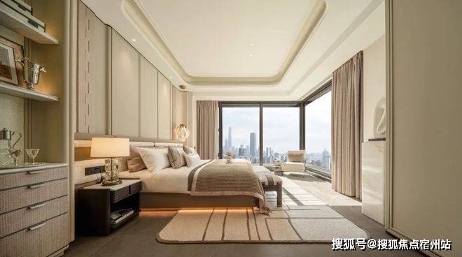 卧室区域,三套房设计,每一间卧室都配备独立卫生间与衣帽间,保障了家庭成员的私密性与舒适度。主卧采用南向大套房设计,配备270°观景飘窗,采光充足,视野开阔,闲暇时分,可坐在飘窗上品茶、观景,享受静谧时光;主卧衣帽间采用L型设计,收纳空间充足,可容纳四季衣物与配饰,兼顾实用性与美观度;主卫配备双台盆、浴缸、淋浴、智能马桶等全套高端卫浴设施,采用国际一线品牌,打造酒店级的私享体验,让业主在忙碌的一天后,能够卸下疲惫,享受舒适的沐浴时光。