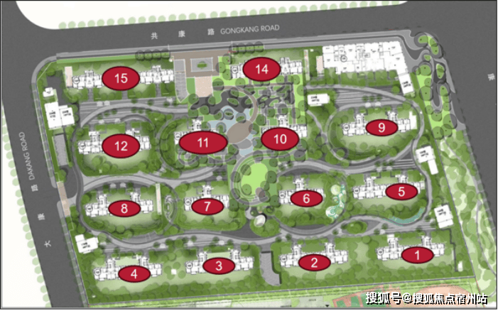 项目四至范围:东至15-06地块(公共绿地)、南至15-04地块、西至大康路、北至共康路,占地面积43500㎡,总建筑面积140051.13㎡,容积率2.20。