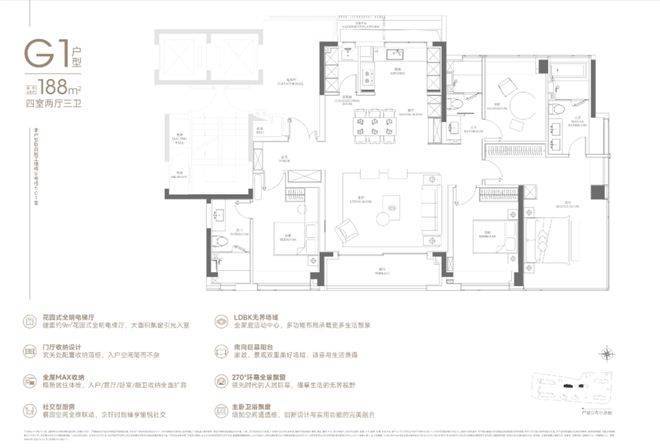 188户型2梯2户,有独立的电梯厅。4房3卫设计,还是3明卫,这两点还是不错的。☑️☑️华润中环置地中心望云售楼处电话:400 - 8377 - 020☑️☑️