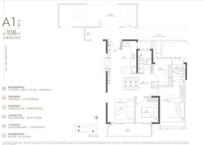 108㎡的入门级三房,起步门槛相比润府提高不少。