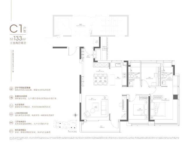 133㎡可以说是108㎡的进阶款,同样的三房两厅两卫,大面宽横厅、半开放式厨房设置岛台,加上主卧L型飘窗,再一次验证了华润置地豪宅化的产品思路。☑️☑️华润中环置地中心望云售楼处电话:400 - 8377 - 020☑️☑️