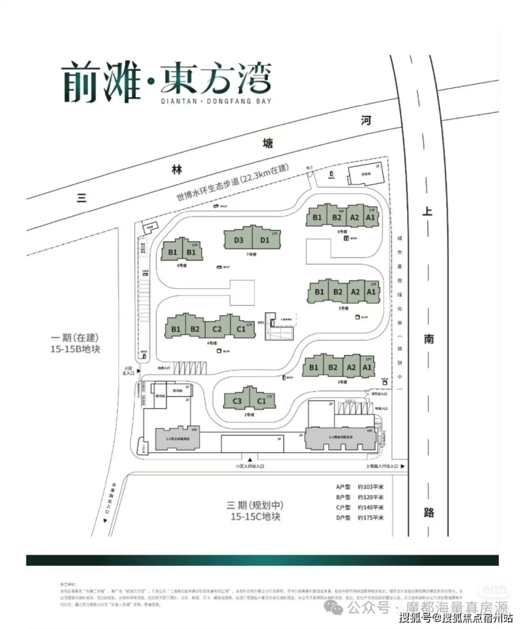 项目所处的位置是超30万方河滨大城,将打造成三林的新地标。二期地块位于一期东侧,即 15-15A地块