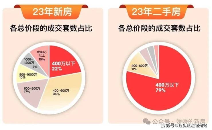 仅是2023年,总价400万以内的新房就已成交 近1.2万套,占比 约22%。而在二手房市场,这一数据要高上 7.6倍,总价400万以内二手房成交 9.16万套,占比 约79% 。