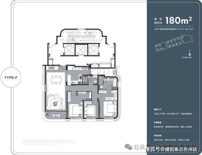 5.产品力强:180-743㎡全产品线,层高3.3-3.5米,3T2/3T3户配置,10万/㎡装修标准,四重入户大堂