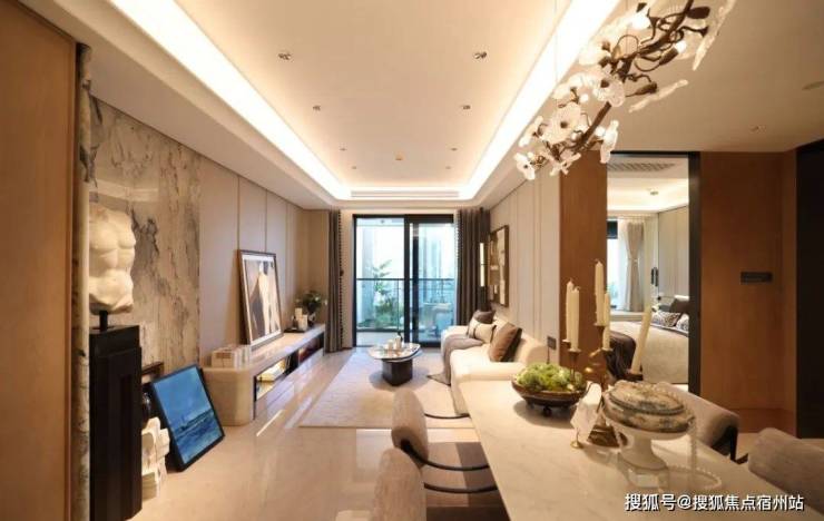 来到建面约112㎡3房2厅2卫样板房,设计主打海派风格,开放式厨房和西餐岛台,卫生间地面拼花,石材台面镀金龙头。标准的三开间户型,设计上将传统的过道改为餐厅空间,将公共区域做大了。