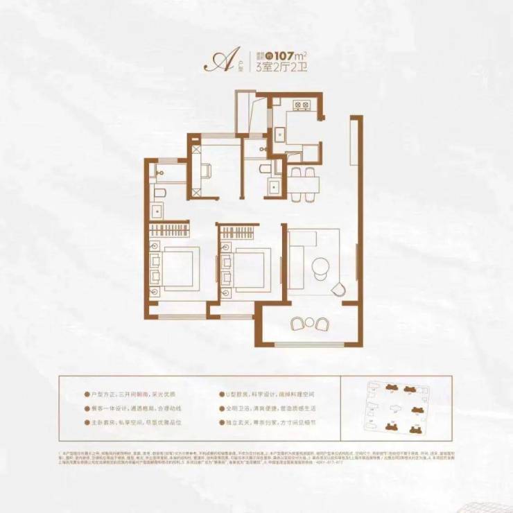得房率:约72%-79%,107㎡三房实得面积约78㎡(含科技系统占空间)。