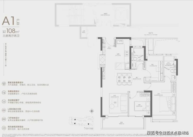108㎡的入门级三房,起步门槛相比润府提高不少。