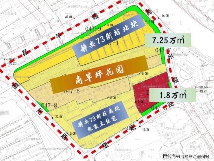 北地块东至西苏州路、南至南草坪小区、西至昌化路、北至昌平路,用地面积16019.4平方米,建筑面积113448.3平方米,容积率4.52,绿化率35%。