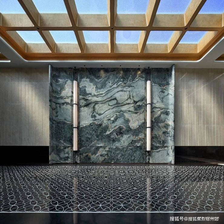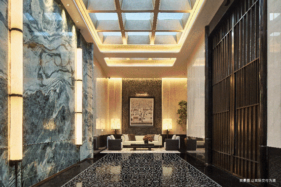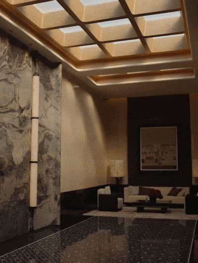 万象入境,步入大堂,恢弘之气迎面而来。整石切割的“万象山河”奢石景墙,以磅礴尺度展开自然绘卷,独一无二的纹理,宛若将天地山河收于一隅,奢石不语,却自有天地,艺术无界,更显胸怀万千。