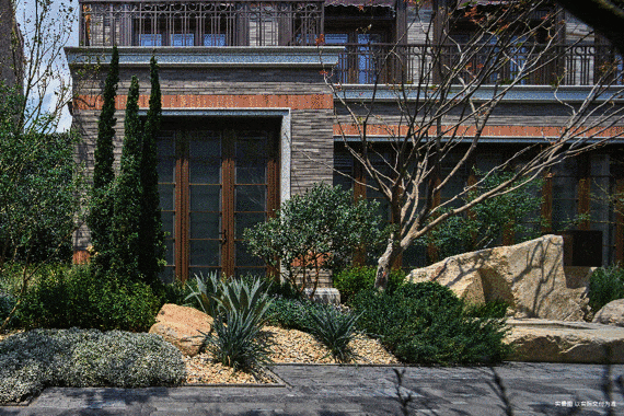 园林构景,意在笔先。为追求极致自然意趣,跨越千里,将太行山金石引入园中,粗砺与晶莹交织,厚重与轻盈对话,在草木掩映间沉淀出“古意天成”的气韵,静默间流淌着岁月醇厚。