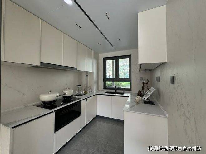 再来看下厨房配置。U型厨房,招商中旅观境售楼处电话:400-833-6309✅︎✅︎预留了大约1米宽的双开门冰箱位置,厨电采用方太四件套——烟机、灶具、蒸烤一体机、洗碗机。其中洗碗机,轻扣门板可自动开门的新款!