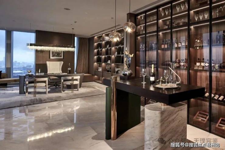 800㎡云端平层,业主开启“资本会晤模式”。德国Dormakaba折叠门隔出120㎡无柱空间,Nobilia定制吧台变数据中岛,MASTER装甲门三重闭锁。配预埋万兆光纤,跨国视频路演经NAS私有云AES - 256加密传输,科技奢华融合,体验非凡。