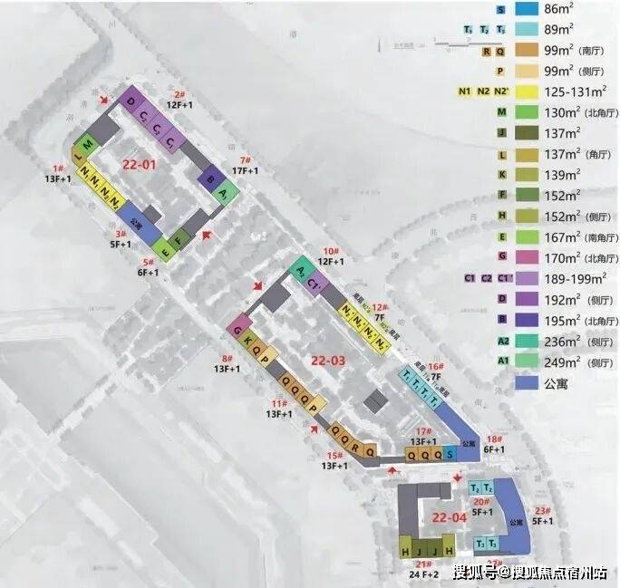 22-01地块占地面积1.1万平方米,总建筑面积5万平方米,包括4栋住宅楼、2栋商业;22-03地块占地面积1.6万平方米,总建筑面积6.7万平方米,包括7栋住宅楼、2栋商业;22-04地块占地面积0.9万平方米,总建筑面积3.8万平方米,包括3栋住宅楼、2栋商业。