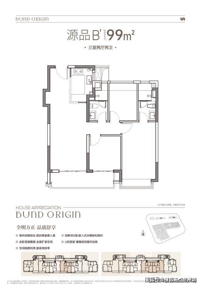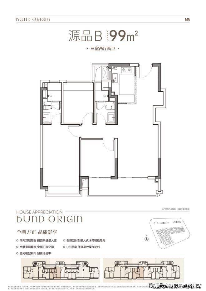 建面约99㎡的户型,得房率更是做到了80%左右!多出的面积,✅✅中建壹品·外滩源著售楼处电话:400-8824-258✅✅实实在在给到更加宽裕的空间,甚至可以说挤出一个次卧的空间!