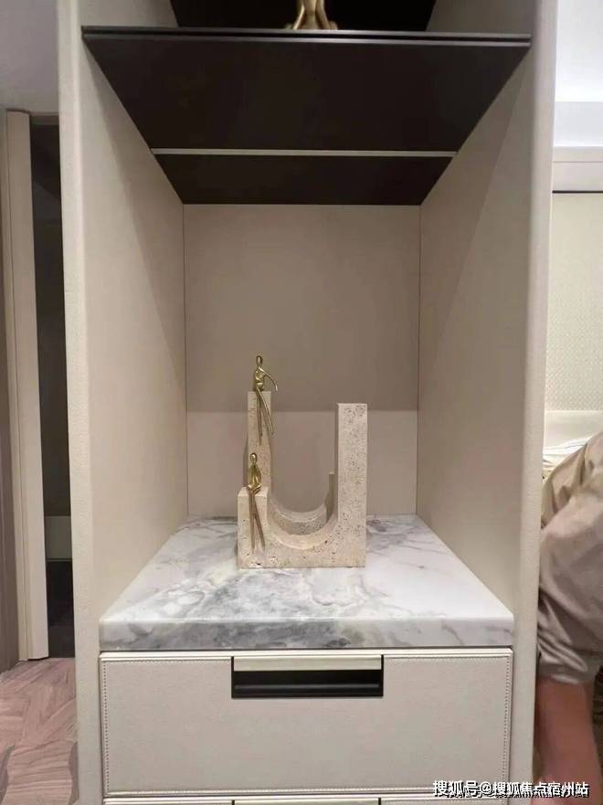 99㎡样板间中,整排到顶玄关柜均为交付标准且为皮质缝线包裹!✅✅中建壹品·外滩源著售楼处电话:400-8824-258✅✅这样的收纳空间,谁看了能不心动?