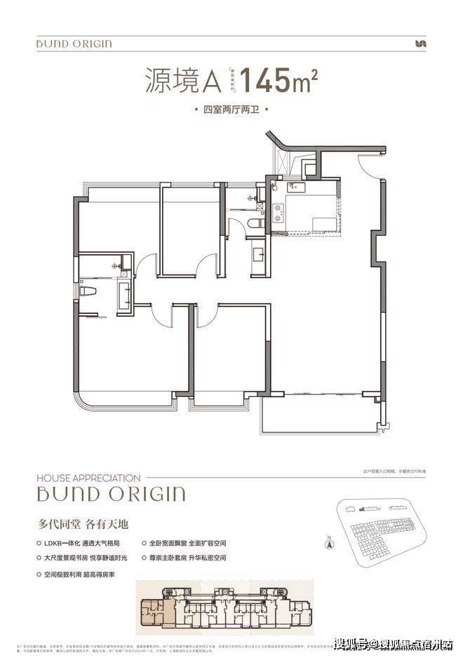 4房2厅2卫格局,三开间朝南+LDKB一体化+全卧室带飘窗+主卧套房设计+动静分离,✅✅中建壹品·外滩源著售楼处电话:400-8824-258✅✅居住功能性更强。