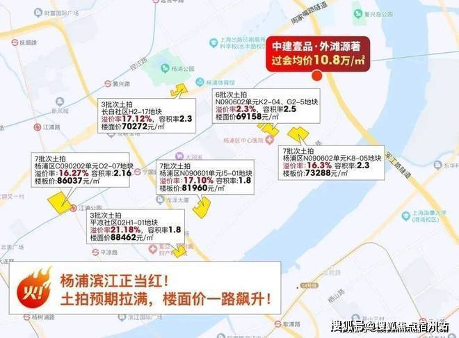 杨浦滨江多幅地块高溢价率拍出,溢价率最高的宅地达到约21.18%,✅✅中建壹品·外滩源著售楼处电话:400-8824-258✅✅楼板价高达约8.8万/㎡,售价达到约12.7万/㎡!