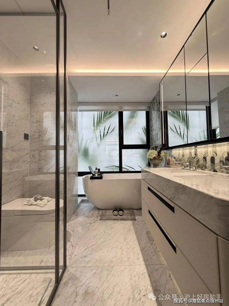 3.八种不同材质的奢石运用,卫生间地面全铺石材