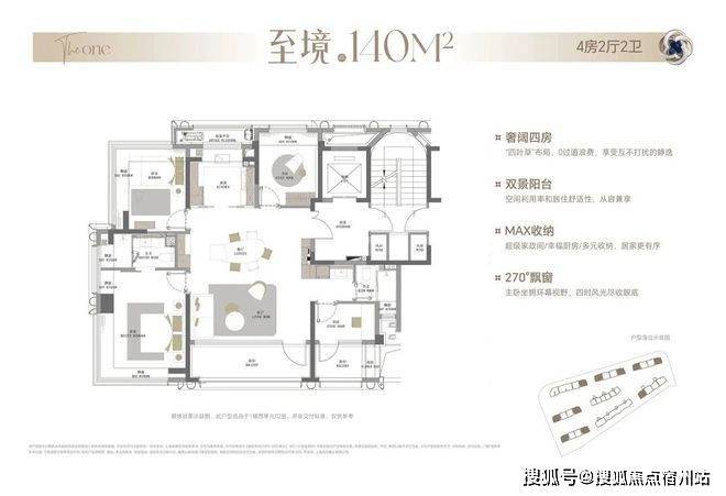 建面约139-140㎡四房两厅两卫:终改奢宅,全维奢适