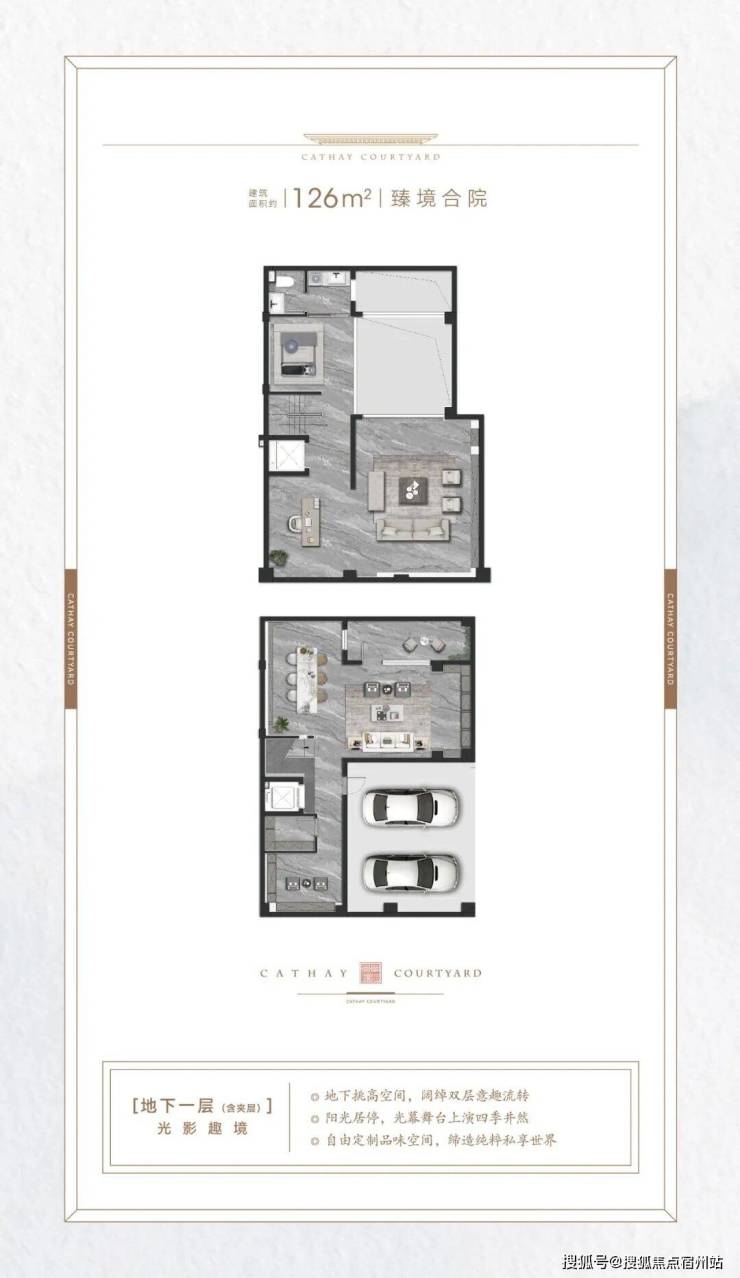约95㎡合院产品做到了 地上2层, 地下室挑高5.5米。