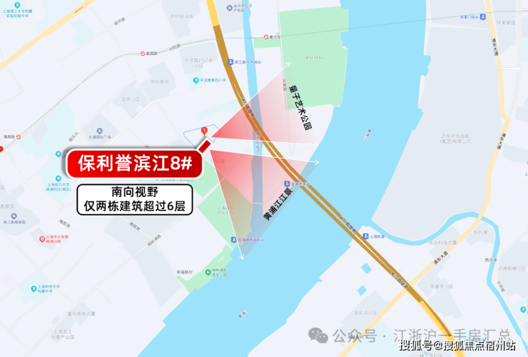当然,江景房的核心终究是“视野”,保利誉滨江8号楼能称得上“景观楼王”,在视野上绝对下足了功夫。这栋楼位于项目南侧,是唯一能正面对江的小高层楼栋,规划待遇和社区叠墅齐平,南向没有任何高层遮挡,直线距离黄浦江仅500米,站在室内就能直面黄浦江壮阔江面!