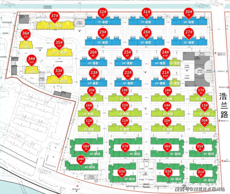 根据设计方案显示, 02-09地块、03-04地块 拟建 55栋4-11F小高层/ 洋房/叠拼/合院产品!