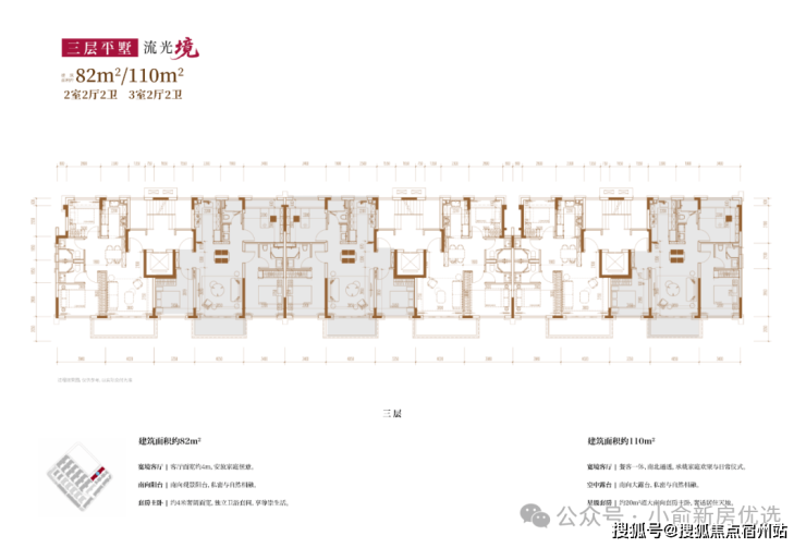 建面约82㎡2房2厅2卫/110㎡3房2厅2卫(三层上叠):