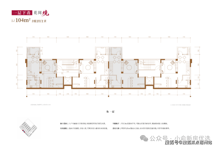 建面约104㎡3房2厅2卫(一层下叠):