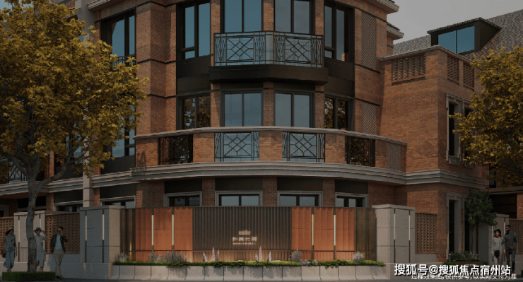 项目外立面通过 坡屋顶、红砖墙、玻璃幕墙、石材基座、金属窗、铁艺栏杆、花格砌块 七大核心元素,完成“海派基因的当代转译”。