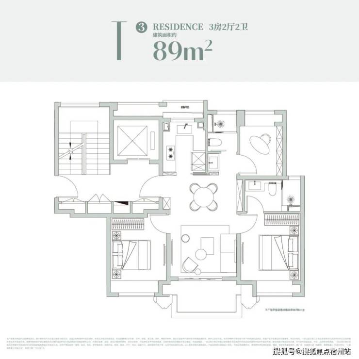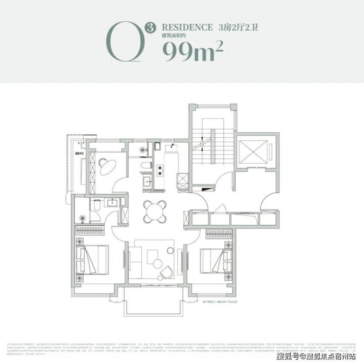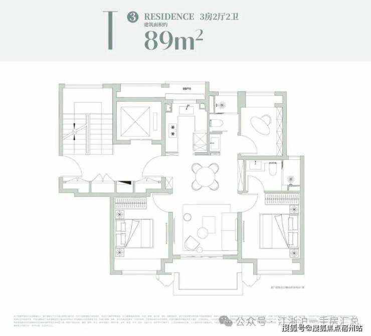 厨房、餐客厅、阳台形成直线通风廊道,南向三开间+宽尺客餐厅,轻松容纳二胎三代家庭的日常;