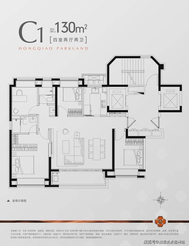 建面约130㎡4房2厅2卫▼