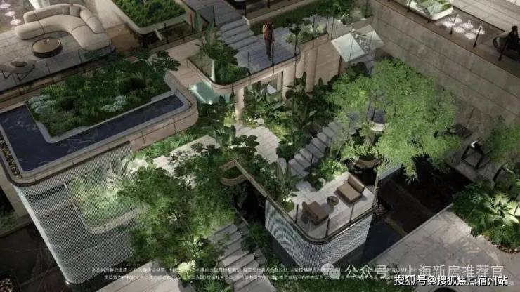 社区景观方面,项目运用室内手法室外化设计构想,将垂直景墙、悬浮观景台与叠水景观立体穿插,形成情随境转的沉浸式体验,自然元素渗透进室内,并与室内空间动态互动。