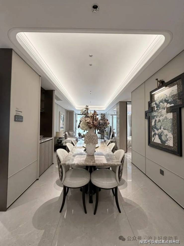 除此之外,最让我惊艳的还是这个能放下6-8人餐桌的宽绰厨房,以及这个尺度感惊人的客厅 。