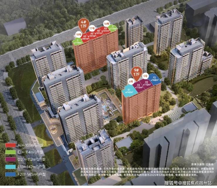 项目涵盖4幅地块,容积率介于1.2-1.6之间,限高40-60米,将打造31栋4-17F住宅产品,整体规划为“洋房/小高层叠墅”的组合形态。