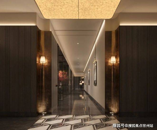 一梯一户与归家礼仪:通过错位设计实现实质的一梯一户,电梯厅成为私享空间。入户玄关采用奢石与水刀拼花工艺,营造出强烈的归家仪式感和尊贵体验。