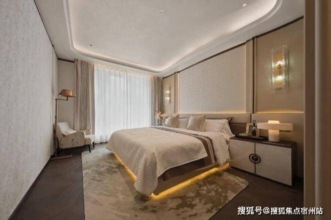 卧室全飘窗设计,有效延伸室内空间,增加休闲空间;