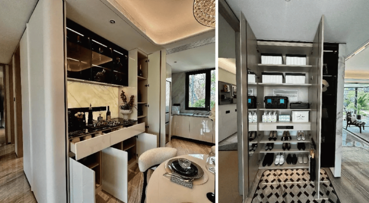 ⑤大手笔的在厨房设计了油烟机自带制冷空调,相比只能吹风的凉霸而言,这样的设计更美观也更舒适,用实力演绎千万级别的高端住宅体验!