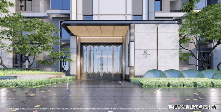 酒店式门廊作为归家的第一道风景,招商臻境以空间大尺度与高级奢石的材质使用将尊崇的归家礼遇感拉满。近50米宽,高度约5.3米高,开口约11米长的高规格酒店式大门。选用了贝金米黄石材作为墙面主材,墙裙用印度蓝石材做装饰。两侧甄选了两颗名贵的罗汉松,有着恭迎归家的美好寓意。