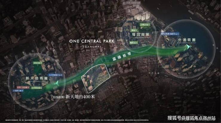 距离新天地直线距离约400米,作为蓝绿丝带规划上的关键节点,随着大新天地东进南拓战略逐步实施,通过 水景、绿地和公共空间,串联 新天地、豫园、外滩三大世界级商业版图。