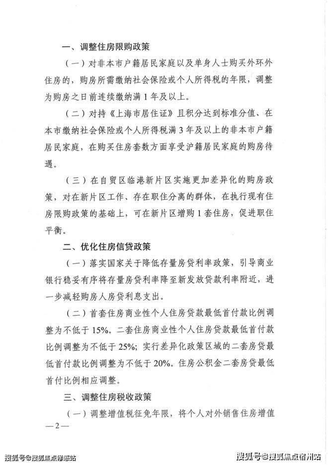一是缩短非沪籍居民购买外环外住房所需缴纳社保或个税年限。对非本市户籍居民家庭以及单身人士购买外环外住房的,购房所需缴纳社会保险或个人所得税的年限,从“购房之日前连续缴纳满3年及以上”调减为“购房之日前连续缴纳满1年及以上”。二是提升持《上海市居住证》且积分达到标准分值群体的购房待遇。对持《上海市居住证》且积分达到标准分值、在本市缴纳社会保险或个人所得税满3年及以上的非本市户籍居民家庭,在购买住房套数方面享受沪籍居民家庭的购房待遇。三是在自贸区临港新片区实施更加差异化的购房政策。对在新片区工作、存在职住分离的群体,在执行现有住房限购政策的基础上,可在新片区增购1套住房,促进职住平衡。