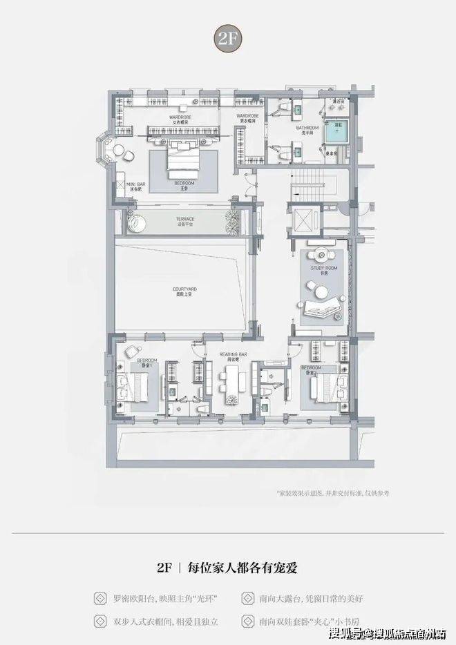 • 主卧双卫双步入式衣帽间,淋浴、花洒、桑拿房,相爱却各有私密弘安里售楼处预约电话:400-8824-198