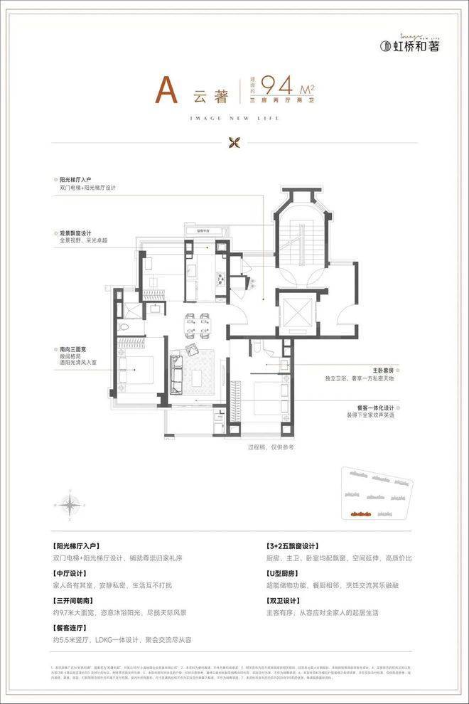 1)建面约94㎡3房