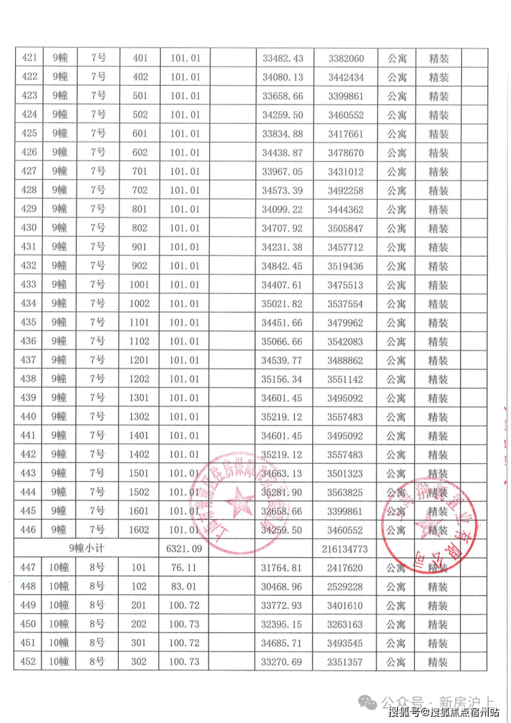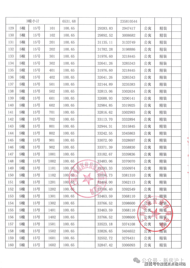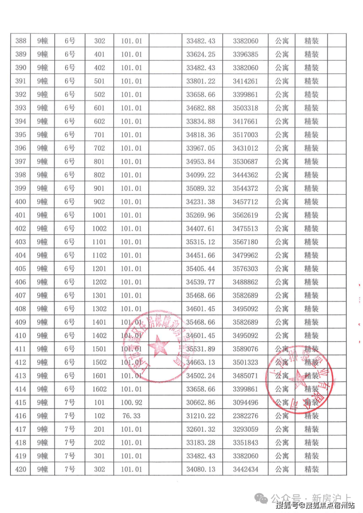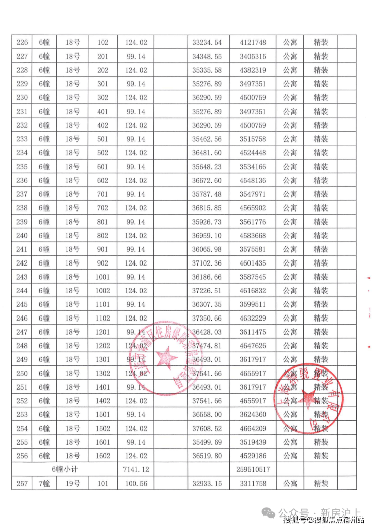 一房一价表