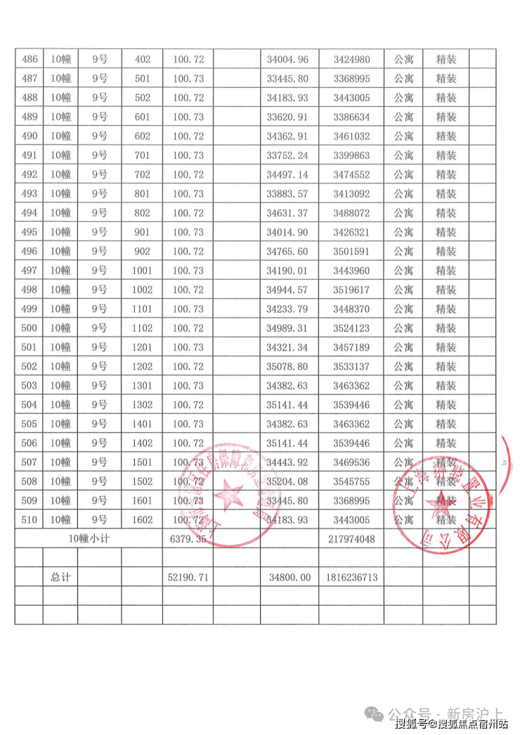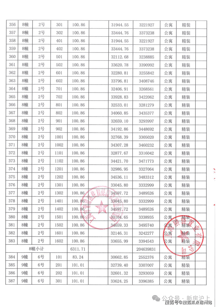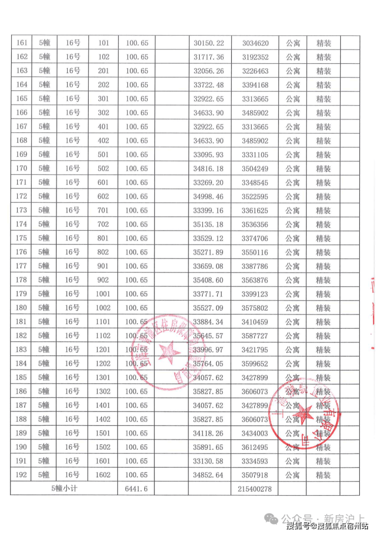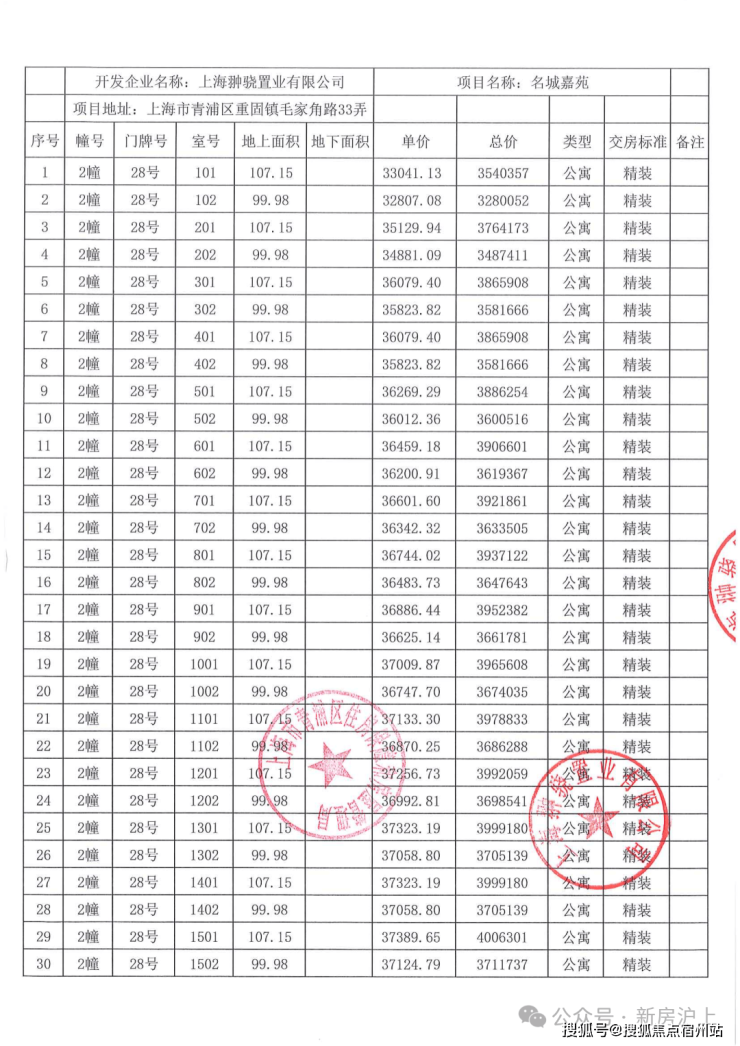 一房一价表