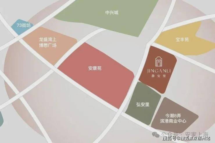 东邻今潮8弄(巴金图书馆、滨港商业中心已绽放)、西接安康苑&龙盛湾上(规划超甲办公/星级酒店/石库门商业),南望弘安里传世石库门大宅。
