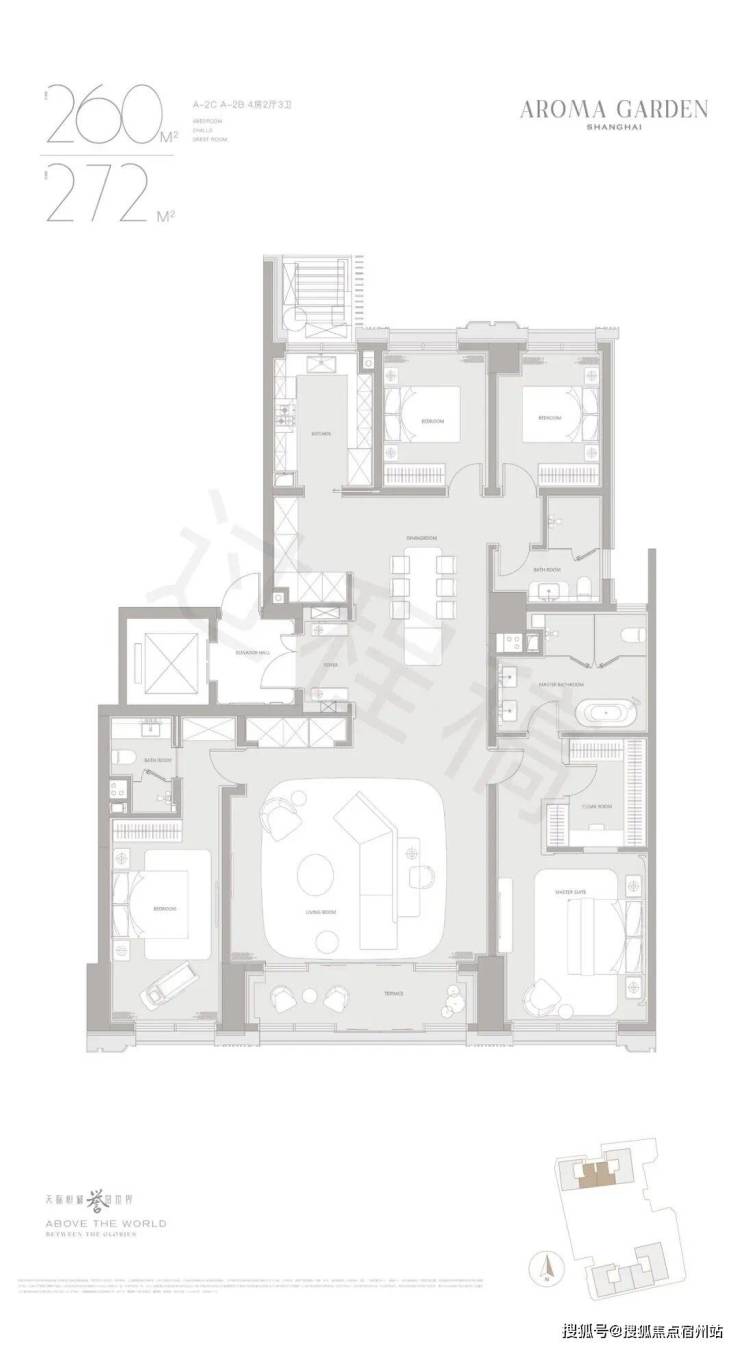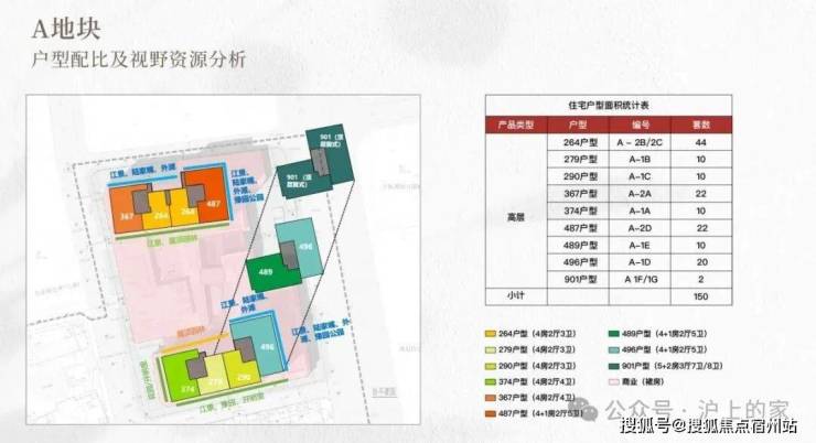 其中, A地块共计150套天际大平层,面积为建面约264-901㎡,主力户型为4房-5房。