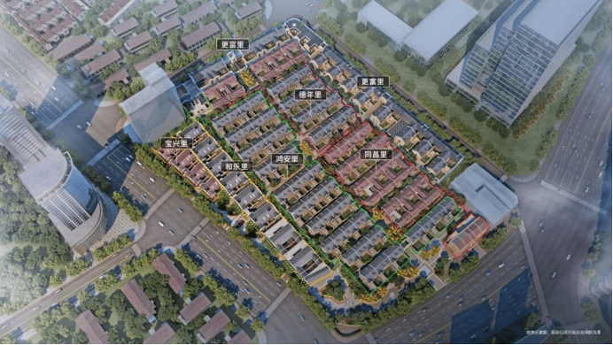 鸿安里,是弘安里的本命组团, 始建的时间为1910年,贯穿场地南北、排数最多,体量最完整的成片里弄,是一部关于海派居住文明活的传承。 在遵循“拆改留”的城市更新原则上,弘安里实行“保护修缮、保留改造、更新改建”的更新手法,打造当代风貌里弄博物馆。项目容积率约为1.1,推出建筑面积约230㎡-760㎡,121席历史风貌住宅。