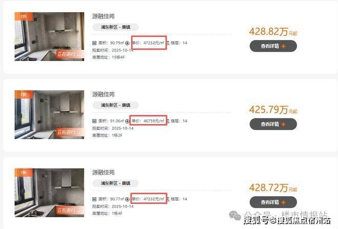 从公示的信息来看,项目的起拍单价不到5万/㎡,集中在4.6-4.7万/㎡左右。总价集中在420-440万左右。